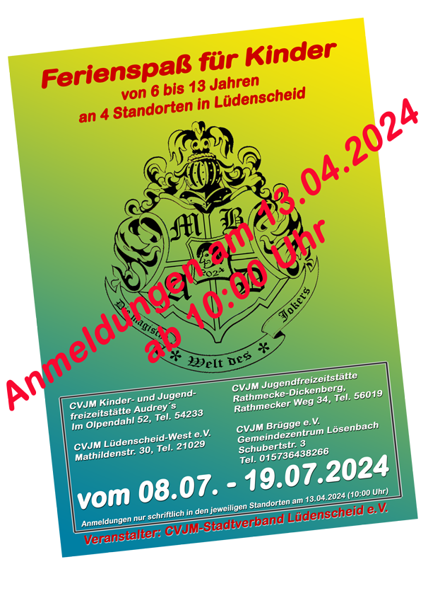 Im Gemeindezentrum Lösenbach treffen wir uns vom 8.07. bis 19.07. zum Thema: Die magische Welt des Jokers.